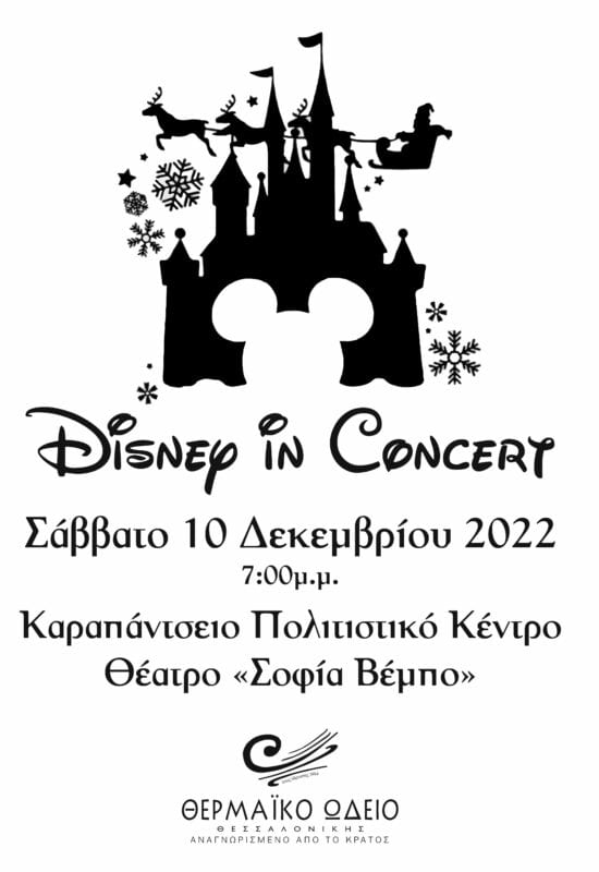 Με χαρά σας προσκαλούμε στην Χριστουγεννιάτικη γιορτή μας “Disney in Concert”, που παρουσιάζουν οι μαθητές του Ωδείου.