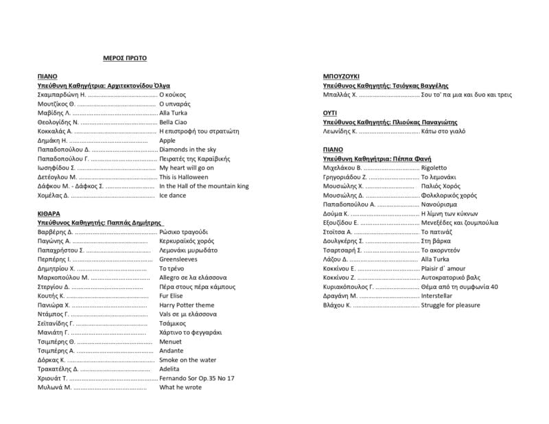 Οι μικροί και μεγάλοι μουσικοί μας θα παρουσιάσουν έργα σπουδαίων συνθετών και μουσικές απο διάφορα είδη και εποχες!