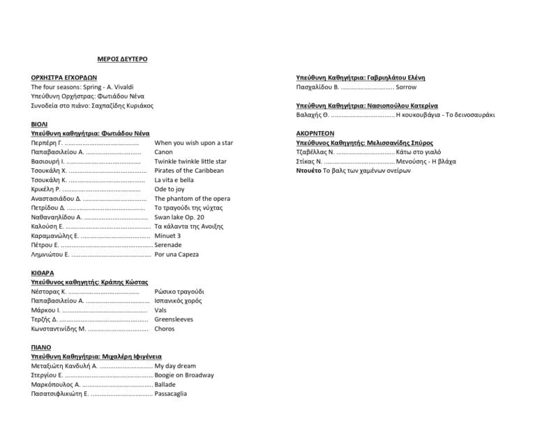 Παρακάτω προβάλλεται το πρόγραμμα της συναυλίας: